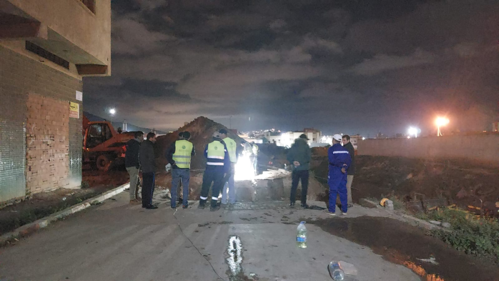 وقد واجهت الفرق التقنية صعوبات ميدانية مرتبطة بعمق موقع القناة وحجم أشغال الحفر الضرورية للوصول إلى نقطة الخلل، غير أن التدخل السريع وتعبئة الإمكانيات البشرية والتقنية اللازمة مكنا من تحديد موقع الانسداد والقيام بعمليات الحفر والتنقية المكثفة باستعمال شاحنات الهيدروكوراج.
