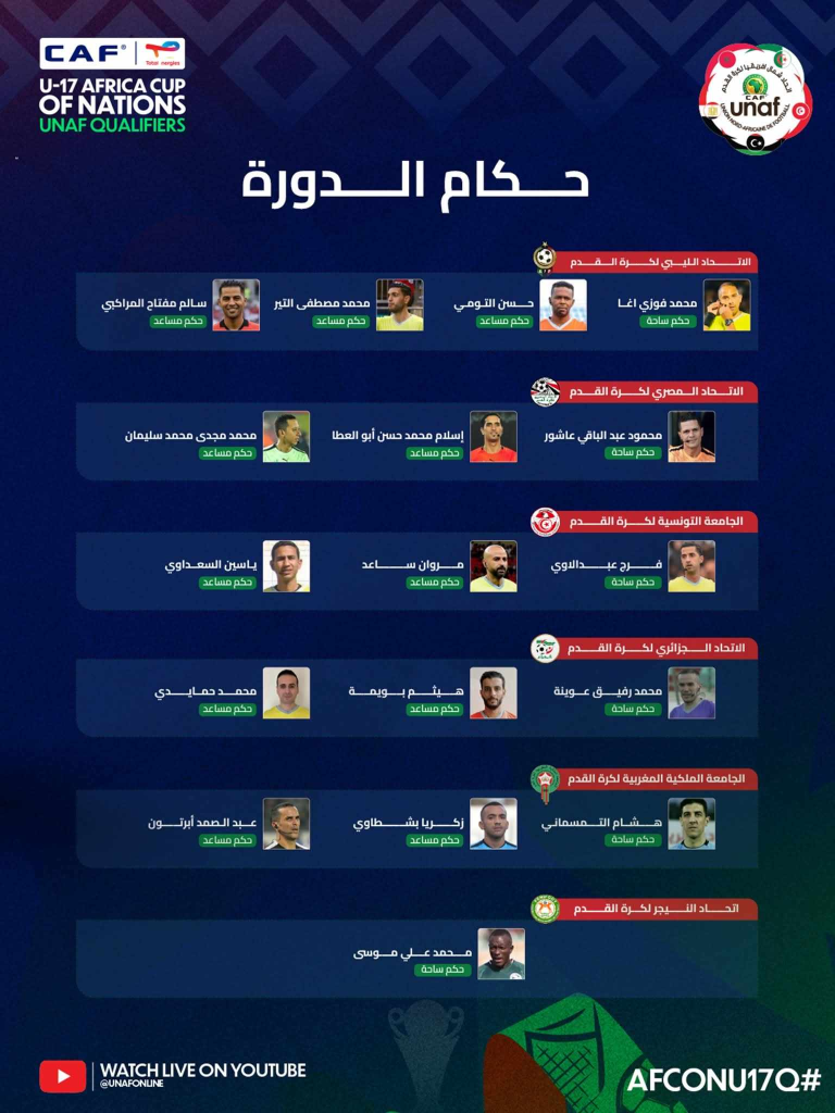 ويُرتقب أن تشهد هذه التصفيات مشاركة منتخبات شمال إفريقيا في منافسة قوية من أجل الظفر ببطاقة التأهل، وسط حضور تحكيمي مغربي يسعى لتأكيد جدارته وتمثيل الكرة الوطنية بأفضل صورة ممكنة.